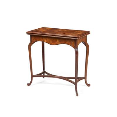 ART NOUVEAU WALNUT AND MARQUETRY INLAID CARD TABLE, CIRCA 1900