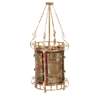 of cylindrical form, set with painted, stained, and leaded glass panels, each with roundels inscribed RUBENS, MICHAEL ANGELO, MOZART, and SHAKESPEARE