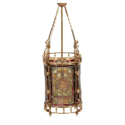 AESTHETIC MOVEMENT BRASS FRAMED HALL LANTERN, CIRCA 1880