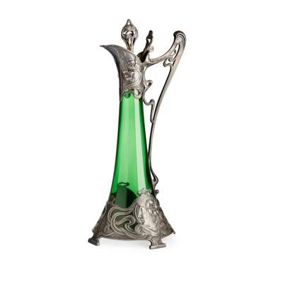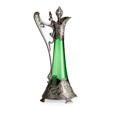 PLATED AND GLASS CLARET JUG, CIRCA 1900