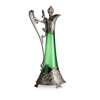 of tall tapering form, the green glass body with single handle and pierced stopper cast with whiplash foliage, stamped maker's marks