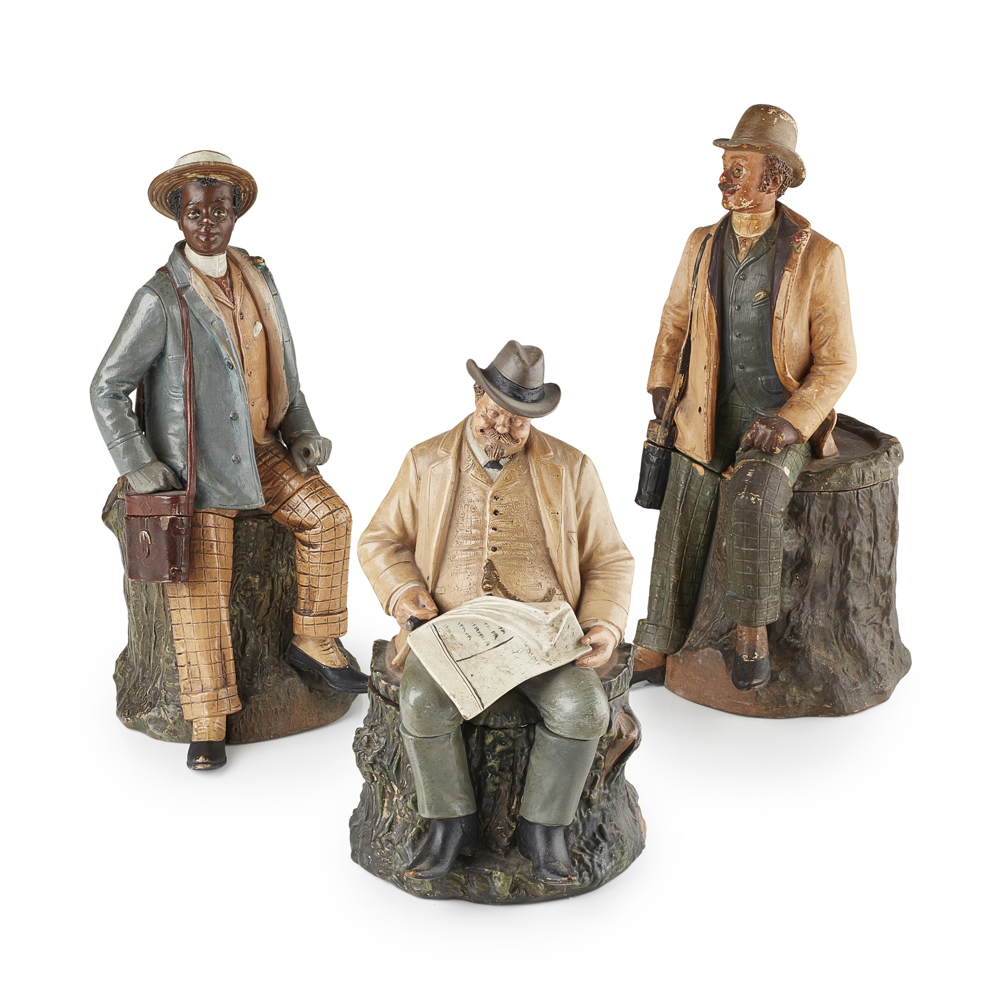 THREE FIGURAL COVERED TOBACCO JARS, CIRCA 1890