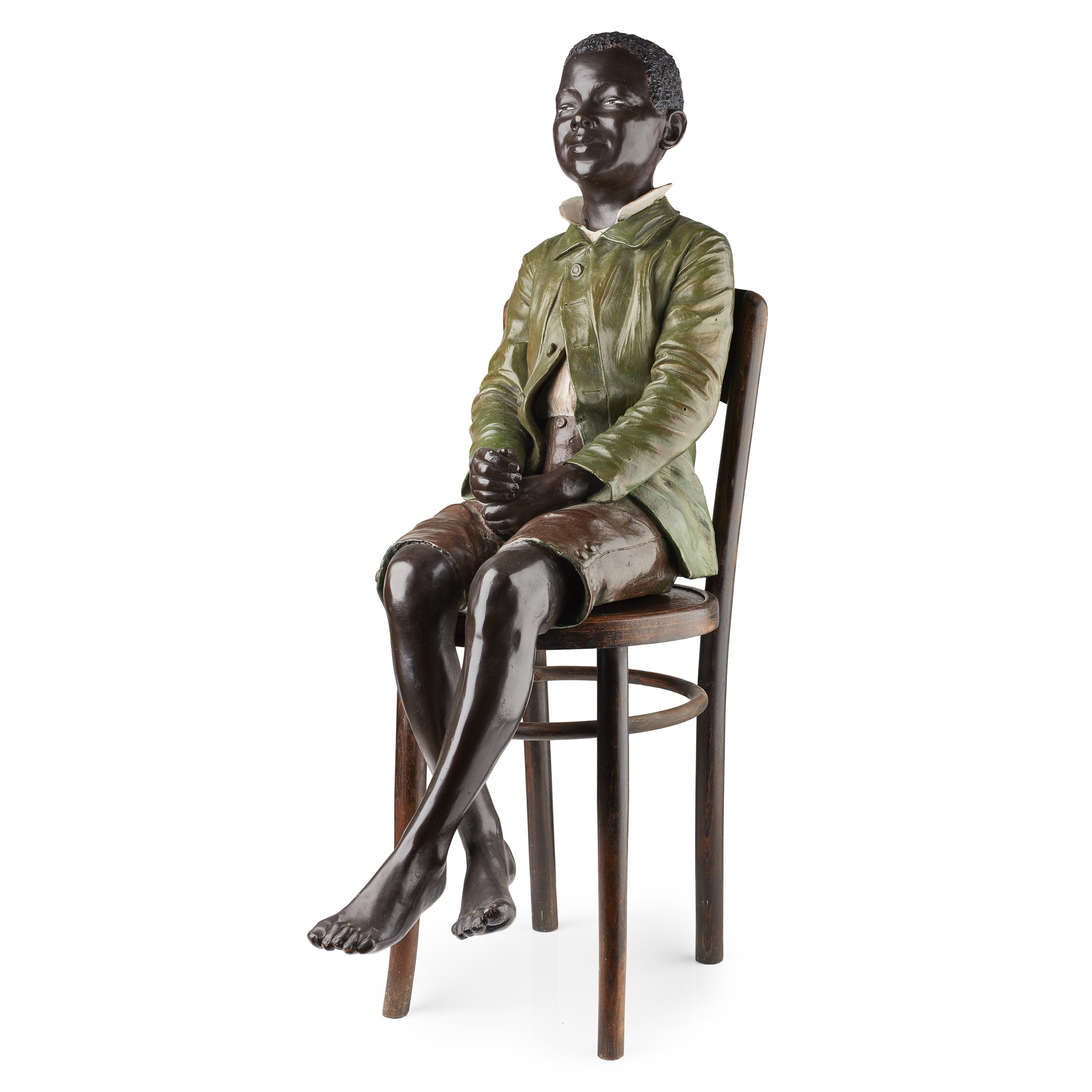 LARGE AUSTRIAN POLYCHROME FIGURE OF A SEATED BOY, CIRCA 1900