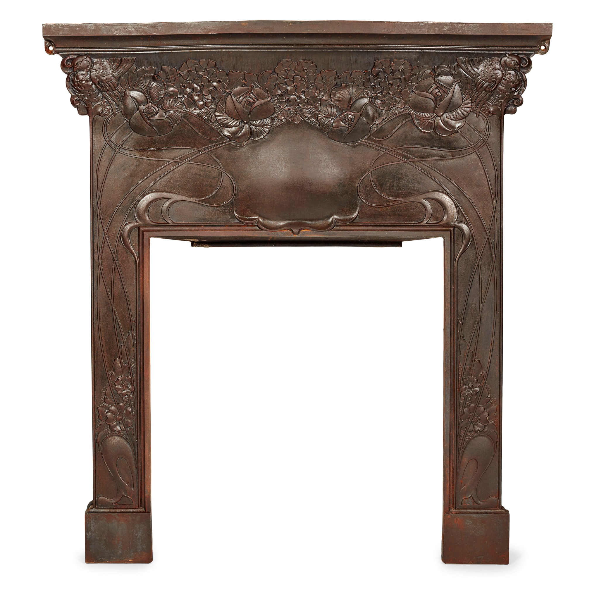 ART NOUVEAU CAST IRON FIRE SURROUND, CIRCA 1910