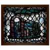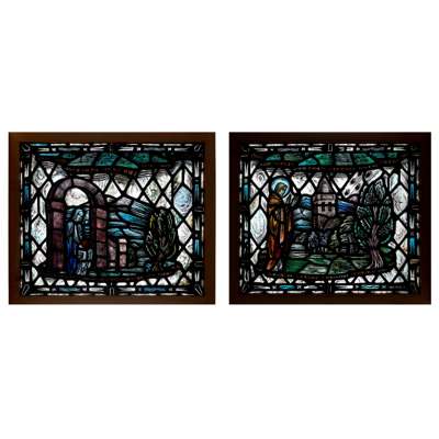 PAIR OF STAINED, PAINTED AND LEADED GLASS PANELS, CIRCA 1950