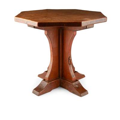 the octagonal top raised on concave carved legs and corresponding feet, with carved mouse signature