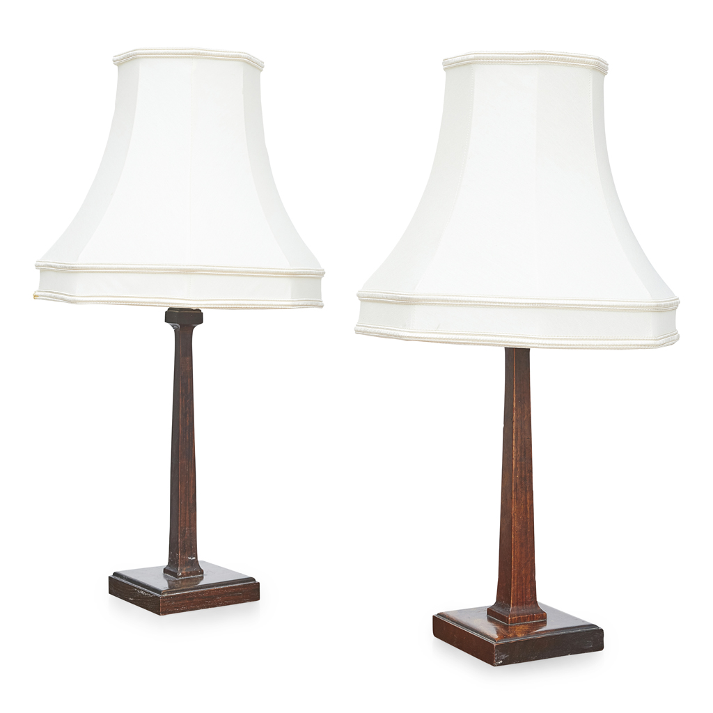 NEAR PAIR OF ANDOMAN PADOUK WOOD TABLE LAMPS, CIRCA 1926