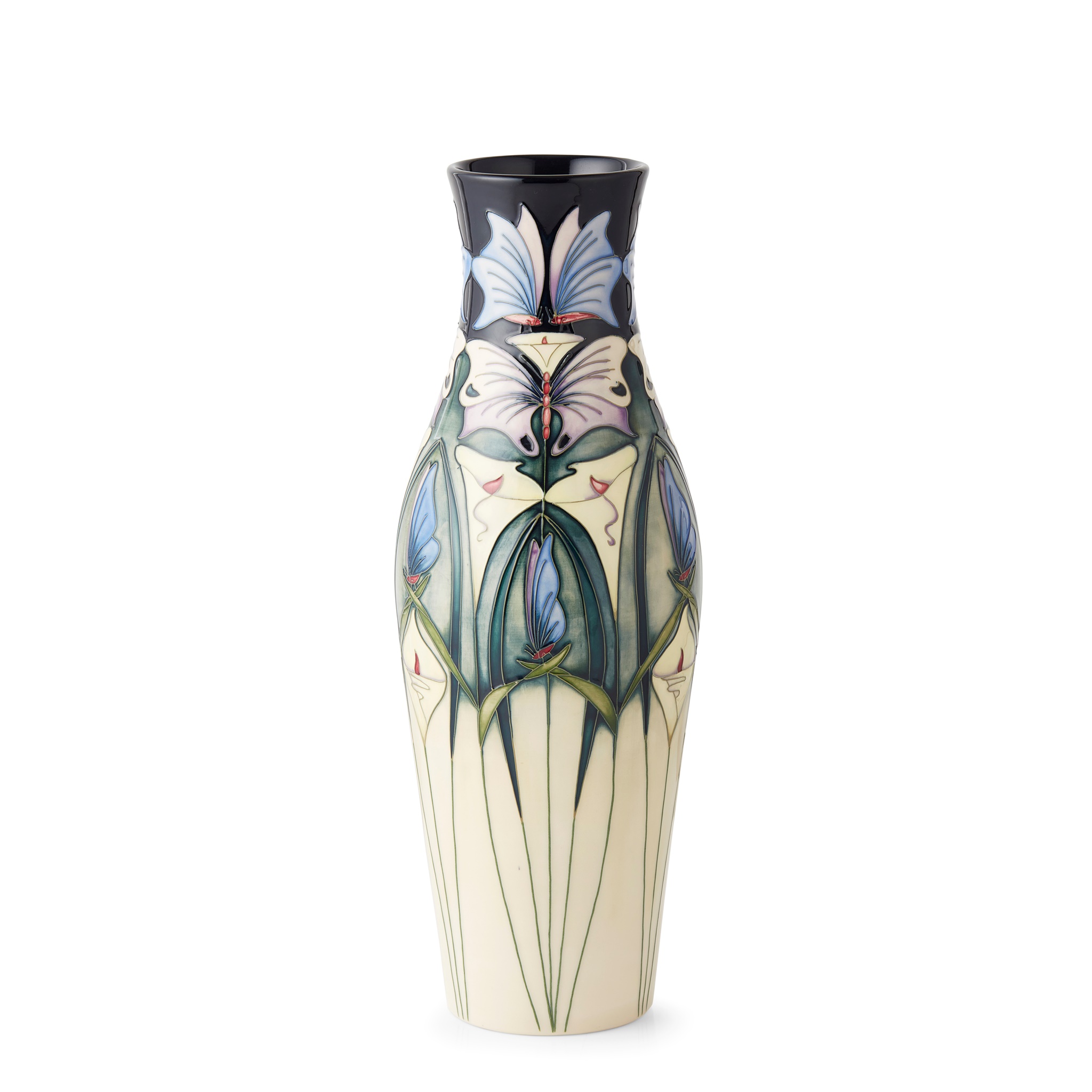 of baluster form, decorated with friezes of butterflies amidst lilies and foliage, number 67 of 150, with impressed and painted maker's marks, signed and dated 2004