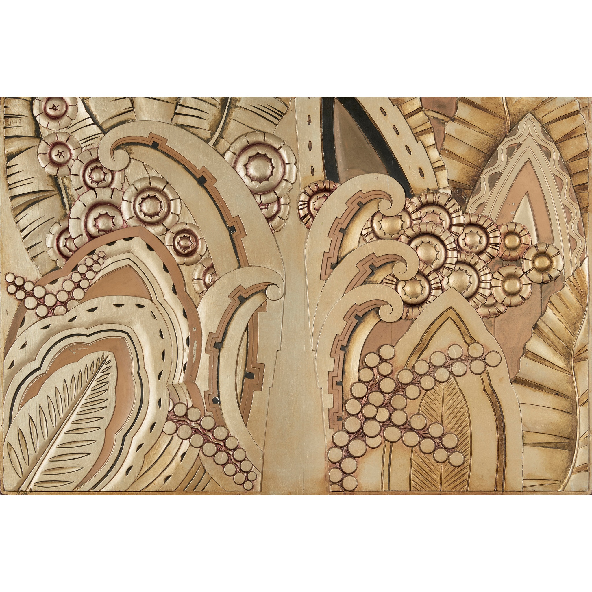 ART DECO STYLE POLYCHROME CARVED WOOD PANEL, 20TH CENTURY