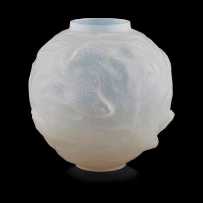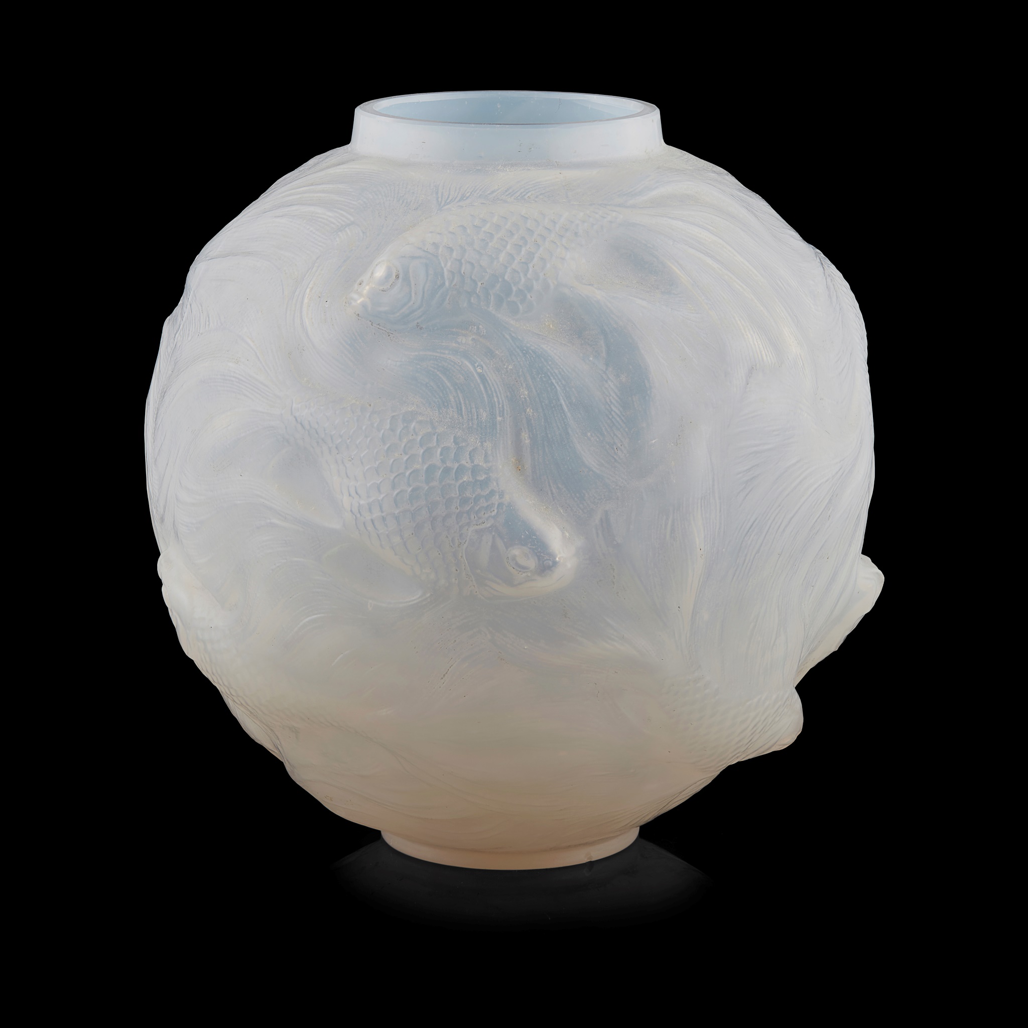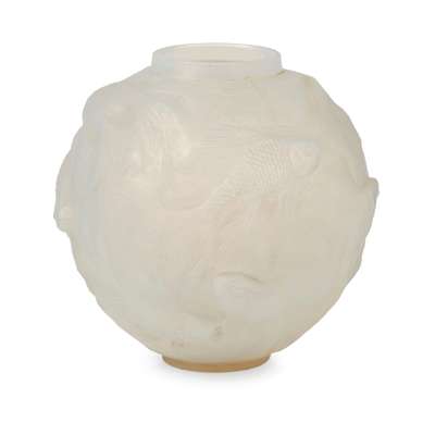 of ovoid form, moulded with fish, wheel and script-etched maker's marks R. LALIQUE/ FRANCE