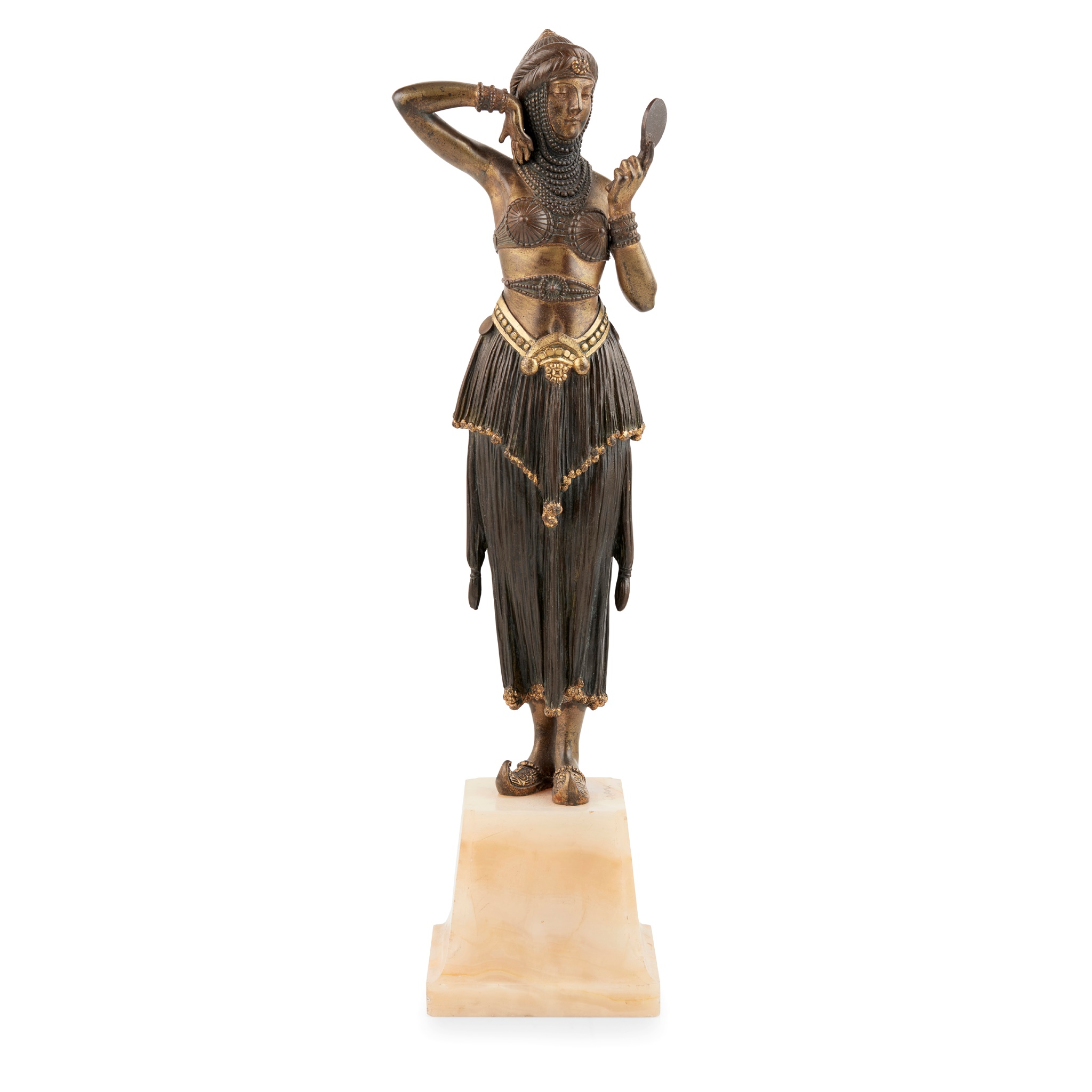 'WOMAN WITH MIRROR' BRONZE FIGURE, CIRCA 1920