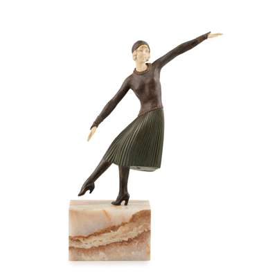 'ELEGANT DANCER' ART DECO BRONZE AND IVORY FIGURE, CIRCA 1930