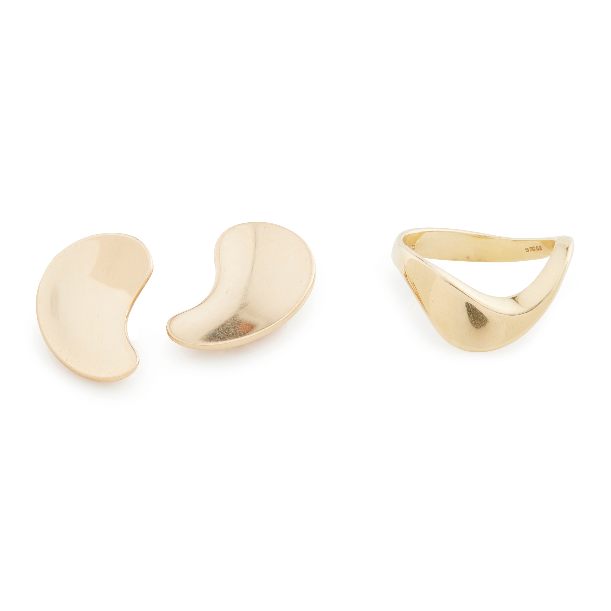 of shaped kidney form, stamped 750/ GEORG JENSEN/ 18K/ 1123, 2.1cm long; together with a GEORG JENSEN 18CT RING, stamped GEORG JENSEN/ 750/ GJ Ld, hallmarked, ring size M/N