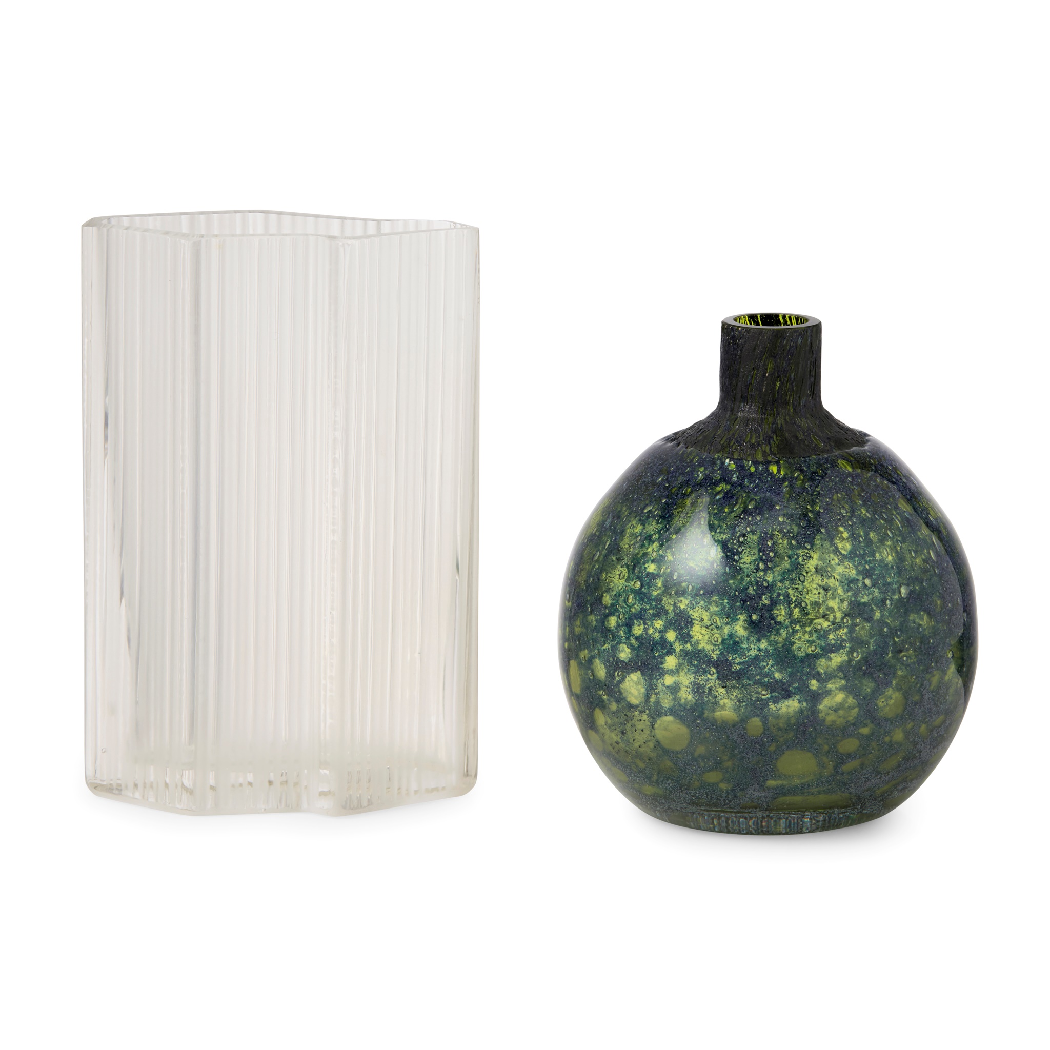 with ribbed surface, etched mark to base TAPIO WIRKKALA/ 3503, 13cm high; and a RANDSFJORD GLASS VASE BY BENNY MOTZFELDT, bears maker's paper label to base, 11cm high