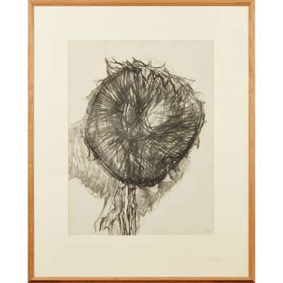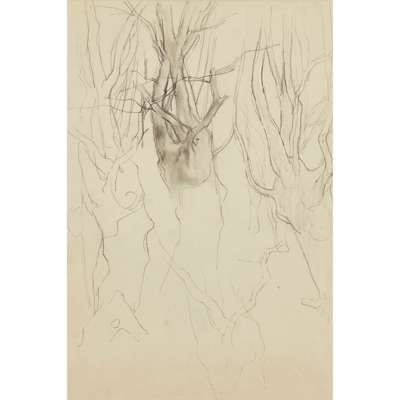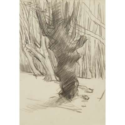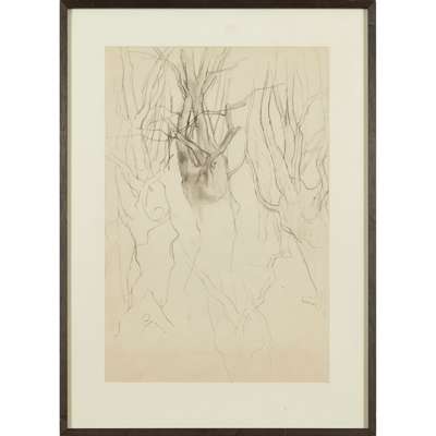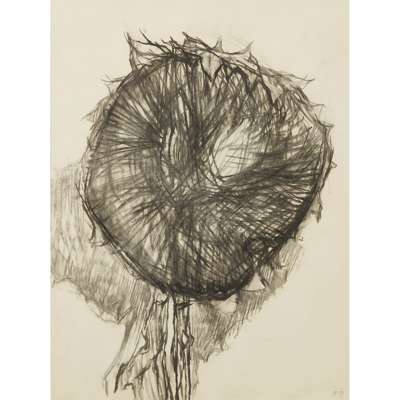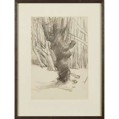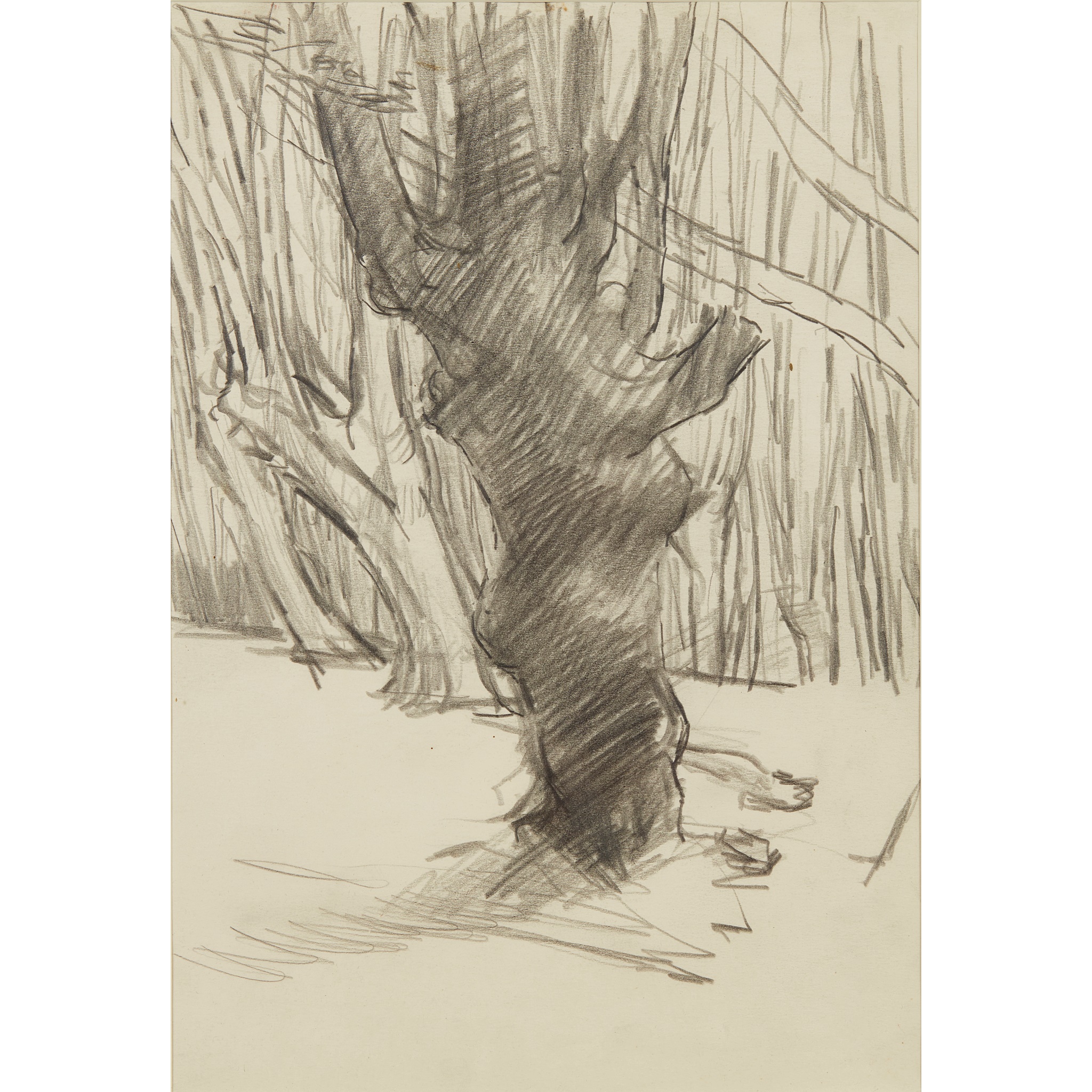 1958, pencil on paper, 37cm x 25.5cm; and ANOTHER STUDY OF TREES BY THE SAME HAND, 54cm x 36cm; and 'SUNFLOWER HEAD' BY THE SAME HAND, charcoal, signed with initials PC/ 59 lower right, 68cm x 50cm