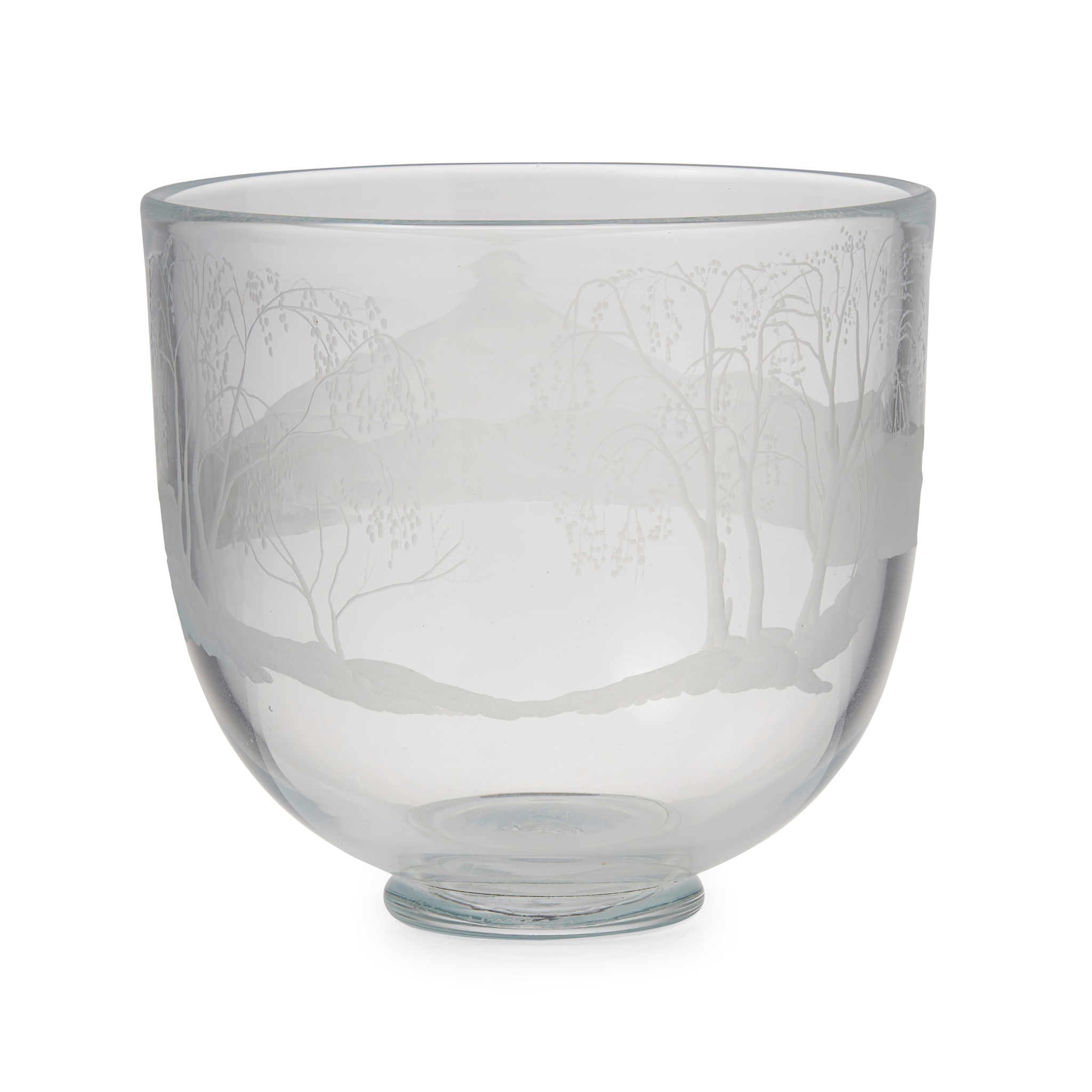 depicting Kilmarnock willow trees amongst a mountainous landscape, etched artist's signature and factory mark ALISON KINNAIRD/ LINDEAN MILL/ '83