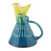 the tilted spout with impressed eyes and feathered wings, above the shaped handle and spreading body with rows of feathers, in yellow and blue glazes, impressed marks LINTHORPE/ 2119