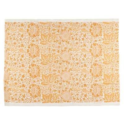 block-printed cotton, mustard colourway, 359cm x 92cm and 209cm x 92cm; FOUR PANELS OF ORIGINAL 'KENNET' FABRIC, REGISTERED 1883, block-printed cotton, designed by William Morris, mustard colourway 126cm x 95cm, 127cm x 95cm, 91cm x 94cm; blue colourway 69cm x 48cm; a SINGLE PANEL OF ORIGINAL 'SNAKESHEAD' FABRIC, REGISTERED 1876, block-printed cotton by Thomas Wardle & Co., Leek, 193cm x 96cm; a SINGLE PANEL OF ORIGINAL UN-NAMED JACOBEAN-STYLE FABRIC, CIRCA 1918, printed cotton by Thomas Wardle & Co., Leek, 91cm x 80cm; a SINGLE PANEL OF ORIGINAL 'SCROLL', 'LITTLE SCROLL' OR 'WILLOW' FABRIC, REGISTERED 1895, the design adapted from an earlier wallpaper design by Morris, 120cm x 90cm; and a SINGLE PANEL OF ORIGINAL 'TANGLEY' FABRIC, CIRCA 1915, printed cotton, 56cm x 94cm, all marked to selvedge REGD. MORRIS & COMPANY and MORRIS & COMPANY/ 449 OXFORD STREET/ LONDON