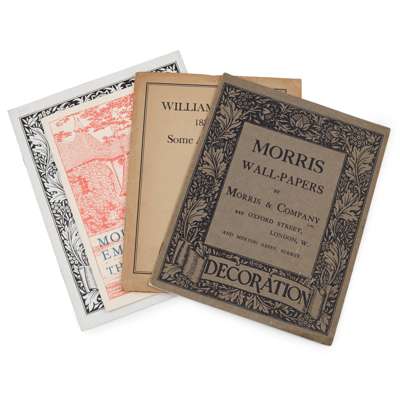 to include PRINTED LINENS AND COTTONS; and WALL-PAPERS, both from the 'Decoration' series circa 1909; WILLIAM MORRIS 1834-1934 SOME APPRECIATIONS, published by the Walthamstow Antiquarian Society 1934; and MORRIS EMBROIDERIES: THE PROTOTYPES by A.R. Duffy, published by The Society of Antiquaries, 1985; together with THE NEW GALLERY CATALOGUE, LONDON 1898-1899 - EXHIBITION OF THE WORKS OF SIR EDWARD BURNE JONES, with foreword by J. Comyns Carr, bookplate to inside front cover inscribed CHARLES ARTHUR WYNNE FINCH