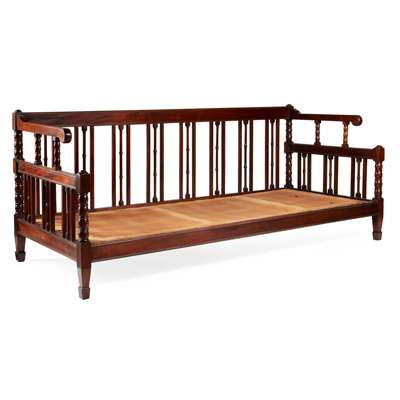 ARTS & CRAFTS MAHOGANY DAY BED, CIRCA 1900