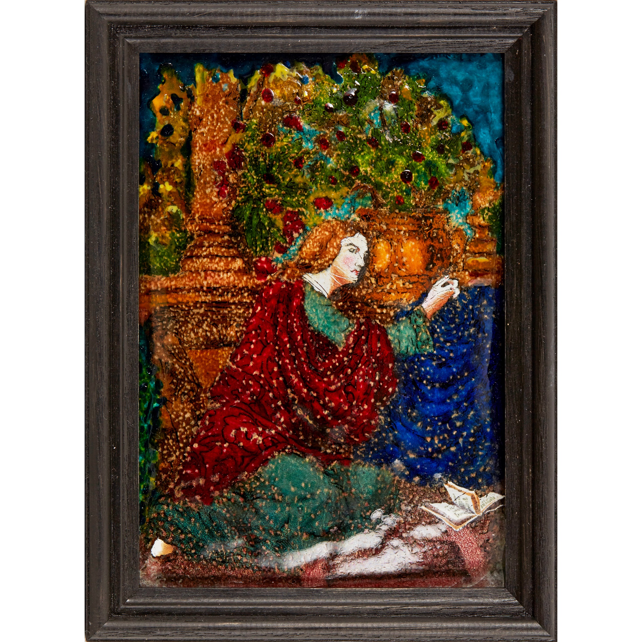 ARTS & CRAFTS FRAMED ENAMEL PLAQUE
