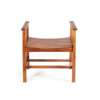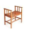 the dished seat with slatted arms, raised on square tapering legs, linked by stretchers