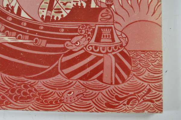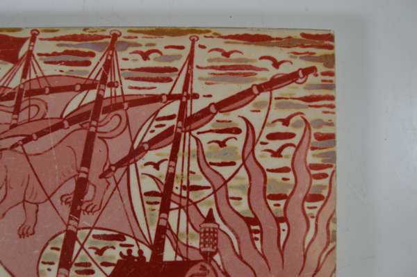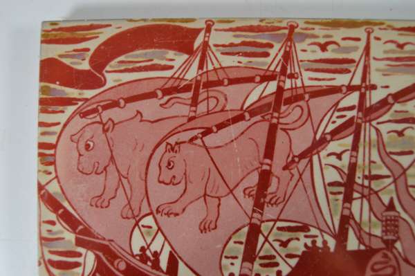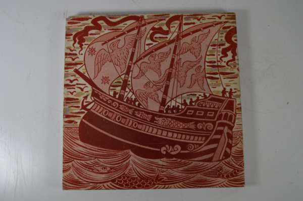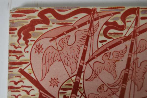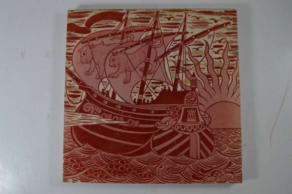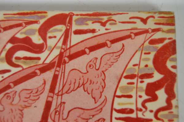 Note: Early lustre tiles by de Morgan were fired on Dutch delft tiles often to impressive effect although these are scarcer. Many examples, as in the present lot, were produced using ' bought in' white glazed industrial tiles. This industrial type of glazed tile had the advantage of consistent and strong glazes and were easily available. The decoration was painted and the tile then re-fired in his workshops.