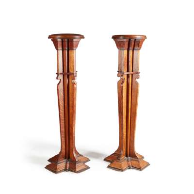 PAIR OF ARTS & CRAFTS OAK TORCHÈRE STANDS, CIRCA 1900