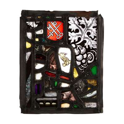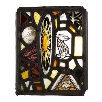 Note: Florence Camm and two of her brothers, Robert and Walter, ran the firm T. W. Camm from 1912 when their father died. Florence was the principal designer and she and her brother Walter designed and created most of the firm's commissions in the Smethwick studio. The studio-workshop transitioned from creating late Victorian designs into more contemporary designs along with the use of colours and materials characteristic of the Arts and Crafts movement. They obtained commissions from influential architects and designers working in the Arts & Crafts style. Camm’s masterpiece The Story of Dante and Beatrice is kept at Birmingham Museum & Art Gallery. The current lot, with painted figurative subjects by Camm and other stained and painted elements by the firm, would have made up by the studio for the commission at Great Hytall House designed by Leonard Harper architect in 1928.