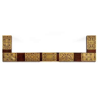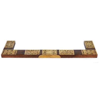 with applied brass panels, pierced with stylised plant forms