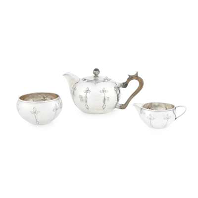 ARTS & CRAFTS THREE-PIECE SILVER TEA SERVICE, BIRMINGHAM 1930