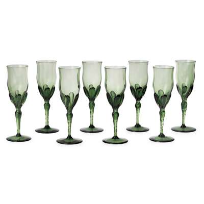 SET OF EIGHT ART NOUVEAU GREEN GLASS FLUTES, CIRCA 1875