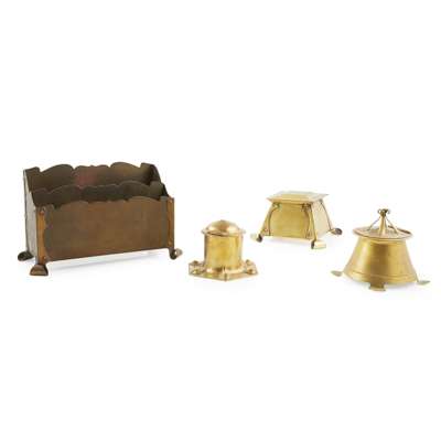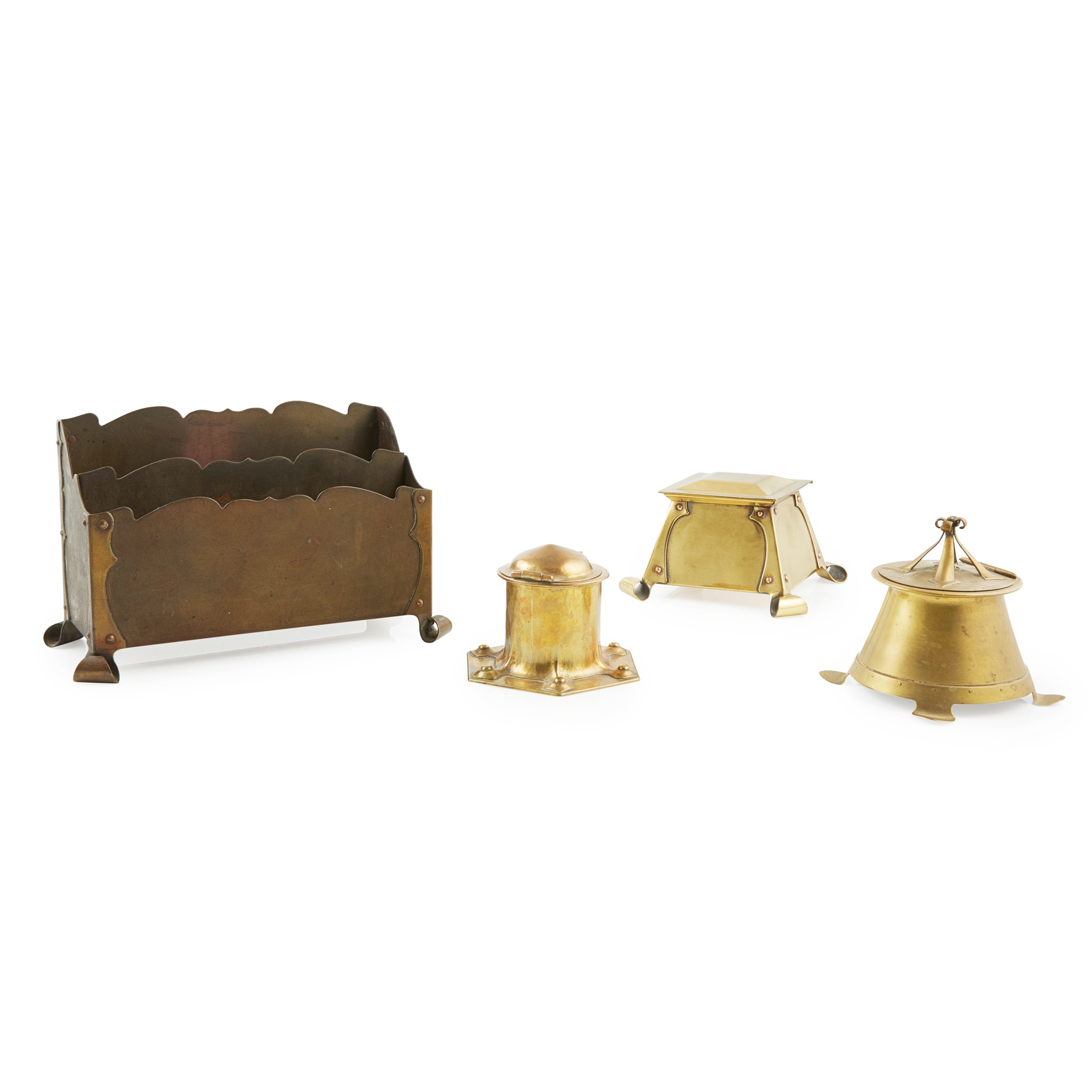GROUP OF ARTS & CRAFTS BRASS DESK WARES, CIRCA 1900
