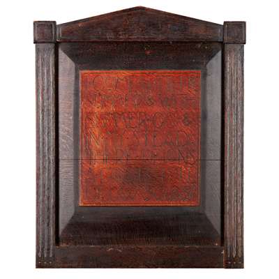 ARTS & CRAFTS CARVED OAK TEXT PANEL, CIRCA 1900
