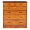 the overhanging top above two short over four long drawers, each with characteristic bronze handles, the whole raised on a plinth, bears maker's label and stamps ARTHUR W. SIMPSON/ THE HANDICRAFTS/ KENDAL