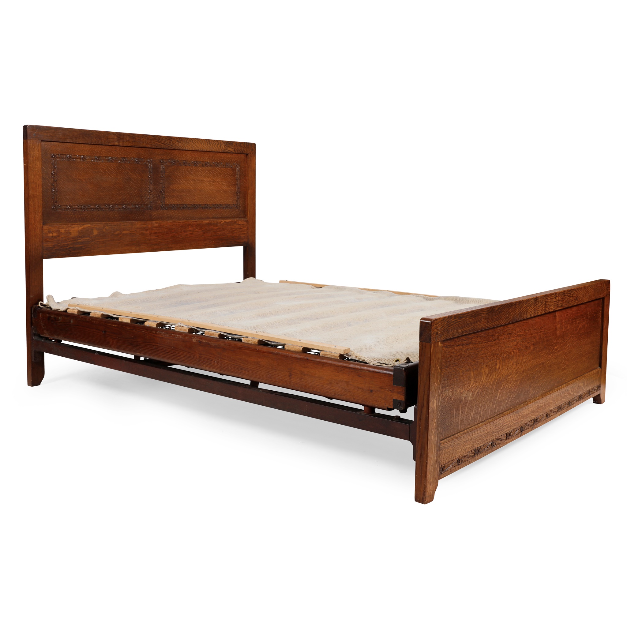 ARTS & CRAFTS OAK DOUBLE BED, CIRCA 1900