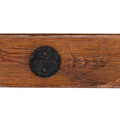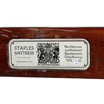 the headboard carved in bas relief with a flowering foliate frieze, bears maker's label and stamps ARTHUR W. SIMPSON/ THE HANDICRAFTS/ KENDAL