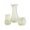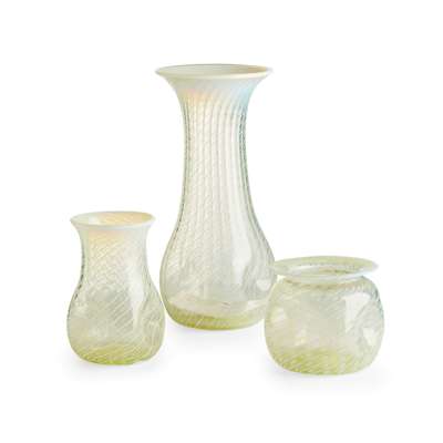 GROUP OF THREE VASELINE GLASS 'FISHNET' VASES, CIRCA 1910