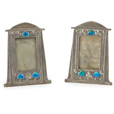 PAIR OF ARTS & CRAFTS PEWTER AND ENAMEL PHOTOGRAPH FRAMES, CIRCA 1900