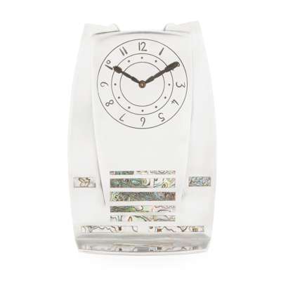 the circular dial enclosed within tapered case inlaid with abalone shell tablets, stamped maker's marks to base TUDRIC/ 0252