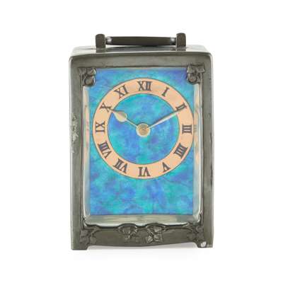 'TUDRIC' PEWTER AND ENAMEL CARRIAGE CLOCK, CIRCA 1900