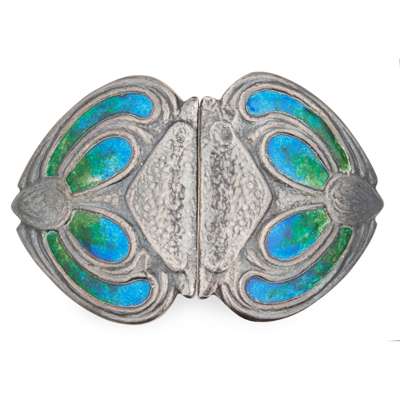 ARTS & CRAFTS SILVER AND ENAMEL BELT BUCKLE, 1902
