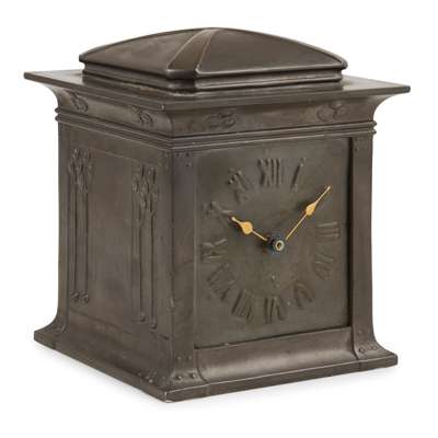 'TUDRIC' PEWTER MANTEL CLOCK, CIRCA 1910