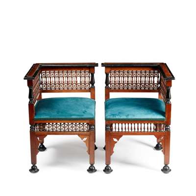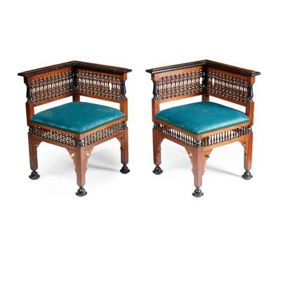 PAIR OF ANGLO-MORESQUE CORNER ARMCHAIRS, CIRCA 1910