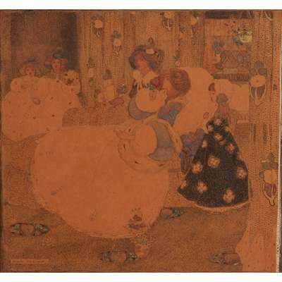 ink, watercolour, gold ink and traces of pencil on paper, signed lower left ANNIE FRENCH