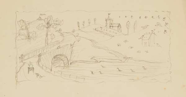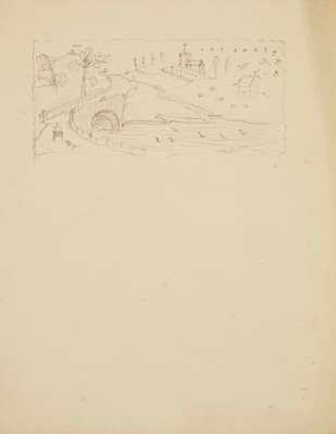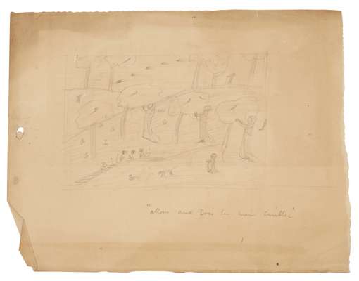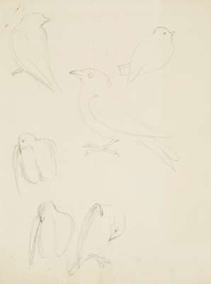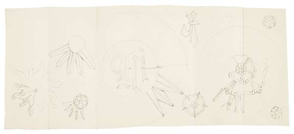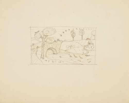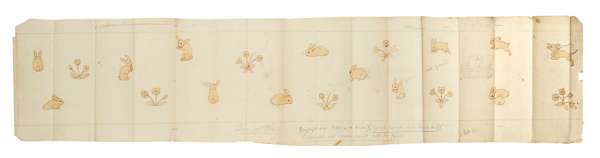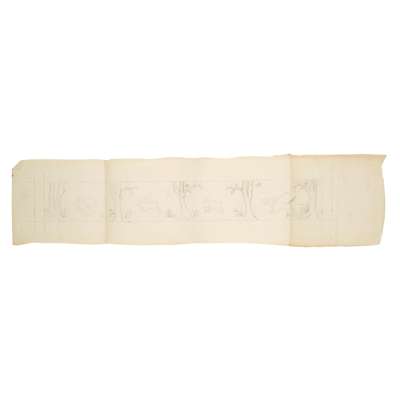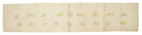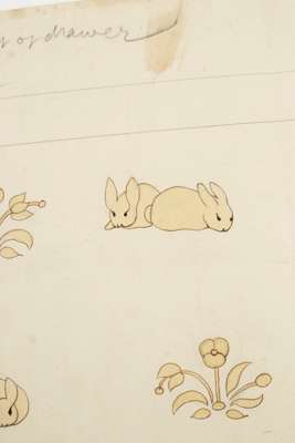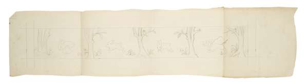 comprising SIX MARQUETRY DESIGNS OF A LANDSCAPE, pencil on paper, variously inscribed, largest 23cm x 98cm; a MARQUETRY DESIGN, depicting young rabbits at play, 31cm x 152.5cm, pencil and coloured pencil on paper, bearing inscriptions, and NINE FURTHER DESIGNS, featuring birds, plants and animals, pencil on paper (measurements and images of all items available on request or see our website www.lyonandturnbull.com)