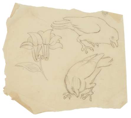 DRAWINGS OF MARQUETRY DESIGNS, PLANT AND ANIMAL STUDIES, EARLY 20TH CENTURY