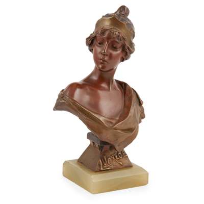 bronze bust, raised on an onyx plinth, signed in the bronze E. VILLANUS, cast inscription to socle LUCRECE, Société des Bronzes de Paris cast mark verso