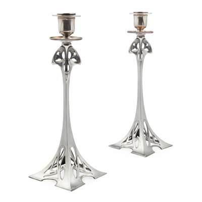 PAIR OF JUGENDSTIL SILVER-PLATED CANDLESTICKS, CIRCA 1900