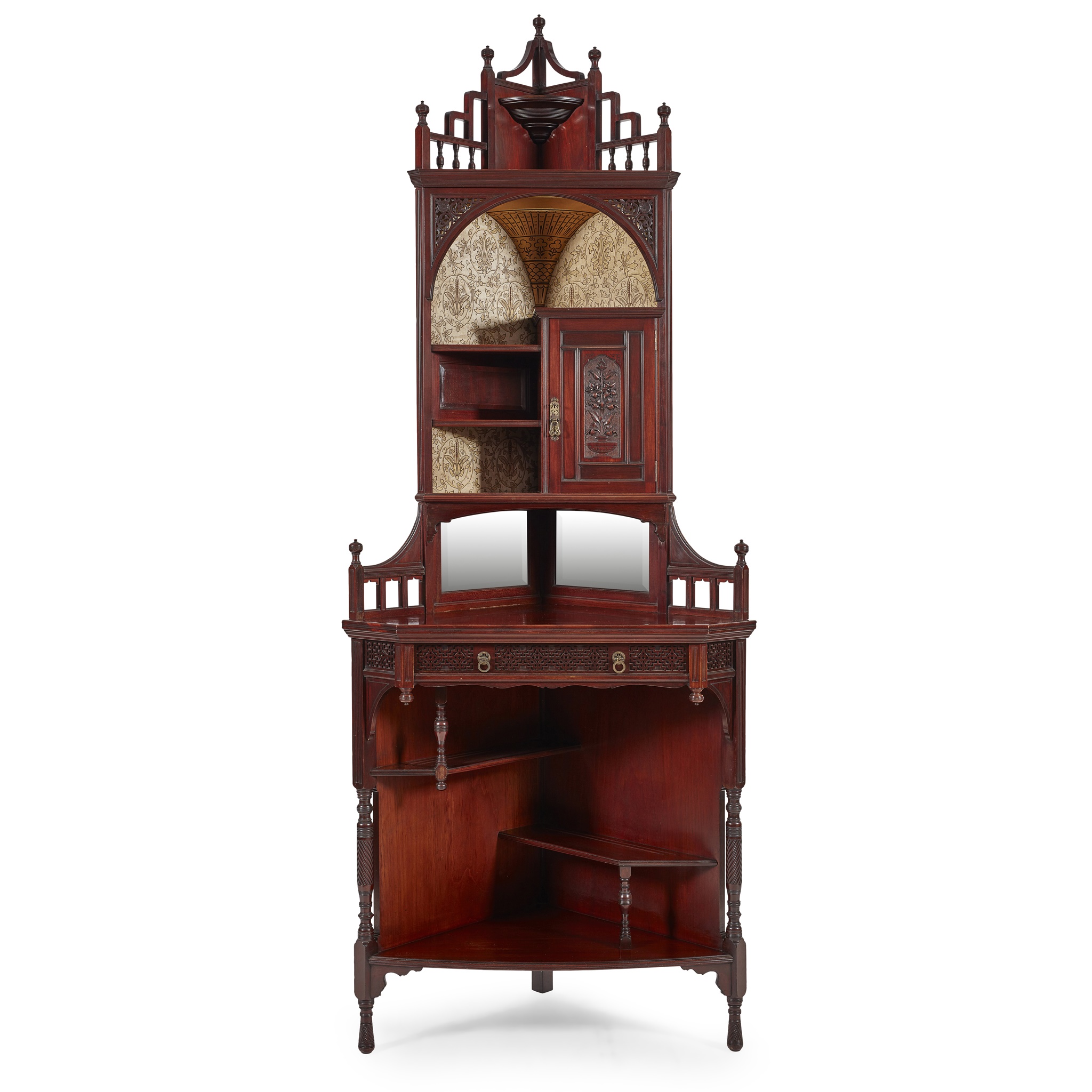 AESTHETIC MOVEMENT MAHOGANY CORNER CABINET, CIRCA 1875
